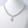 An eternity diamond necklace in princess cut diamonds boast an F color and VS clarity, resting on 18K Italian white gold by Diagold Jewelry.