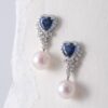 A pair of moon stud earrings in round and tapered cut diamonds boast a G-H color and VS-SI, resting on 18K white gold by Diagold Jewelry.