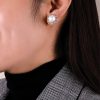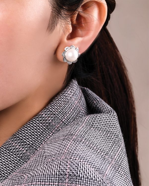 A pair of detachable stud earrings in round south sea pearl and round cut diamonds boast a G-H color and VS-SI clarity, resting on 14K Italian white gold by Diagold Jewelry.