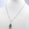 A magnificent emerald necklace featuring round diamond cuts with yellow diamonds resting on 18K white gold setting by Diagold Jewelry.