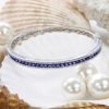 A diamond bracelet in round and tapered cut diamonds boasts a G-H color and VS-SI clarity, resting on 18K two-color gold by Diagold Jewelry.