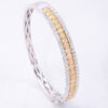 A stylish bangle with round cut diamonds boasts G-H color and VS-SI clarity, resting on 18K white gold by Diagold Jewelry.
