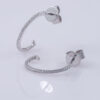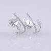 A pair of huggie earrings in emerald illusion cut diamonds, resting on 18K white gold by Diagold Jewelry.