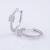 A pair of stud earrings in round and pear cut diamonds, resting on 18K white gold by Diagold Jewelry.