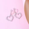 A pair of heart dangle earrings in round and tapered cut diamonds boast a G-H color and VS-SI clarity, resting on 18K white gold by Diagold Jewelry.
