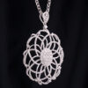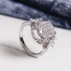 A pair of flower stud earrings in round cut diamonds boast a G-H color and VS-SI clarity, resting on 18K yellow gold setting by Diagold Jewelry.