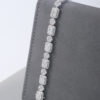 An eternity bracelet in round and tapered cut diamonds boast a G-H color and VS-SI clarity, resting on 18K white gold by Diagold Jewelry.