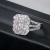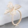A flower ring in round cut diamonds boasts a G-H color and VS-SI clarity, resting on 18K Italian yellow gold by Diagold Jewelry.