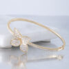 An open diamond flower bangle in round cut diamonds boasts a G-H color and VS-SI clarity, resting on 18K yellow gold by Diagold Jewelry.