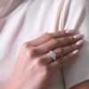 A multi-cut diamond ring boasts a G-H color and VS-SI clarity, resting on 18K Italian white gold by Diagold Jewelry.