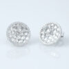 A pair of flower stud earrings with round cut diamonds boast a G-H color and VS-SI clarity, resting on 18K white gold by Diagold Jewelry.