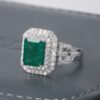 A majestic emerald necklace with round cut diamonds boast a G-H color and VS-SI clarity, resting on 18K white gold setting by Diagold Jewelry.