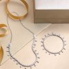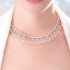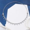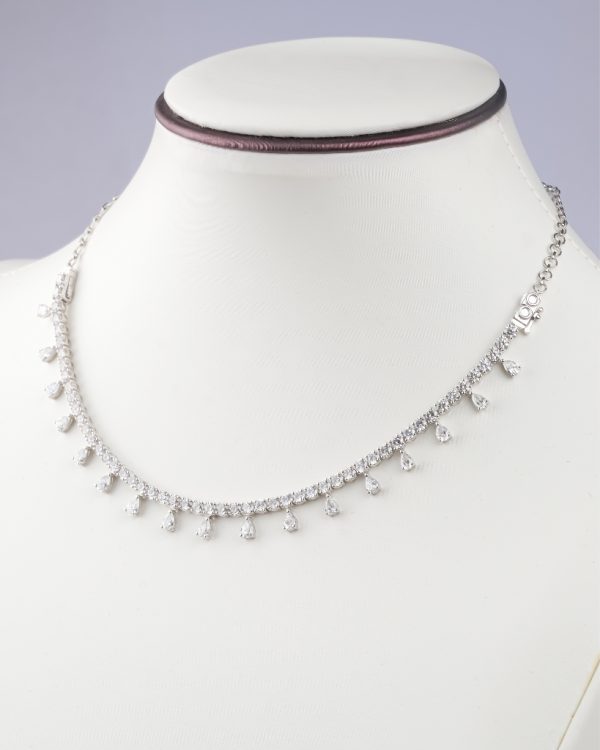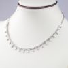 A minimalist double-purpose necklace in round and pear cut diamonds boast a G-H color and VS-SI clarity, resting on 18K white gold by Diagold Jewelry.