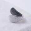 A ring in round cut white and black diamonds boast a G-H color and VS-SI clarity, resting on 18K Italian white gold by Diagold Jewelry.