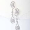 A pair of hoop earrings in round cut diamonds boast a G-H color and VS-SI clarity, resting on 18K white gold by Diagold Jewelry.
