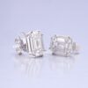 A pair of stud earrings in heart cut diamonds boast an F color and VS-SI, resting on 18K white gold by Diagold Jewelry.