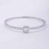 A diamond bangle in round and tapered cut diamonds boasts a G-H color and VS clarity, resting on 18K white gold by Diagold Jewelry.