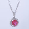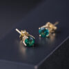 A pair of ruby stud earrings resting on 14K Italian yellow gold by Diagold Jewelry.