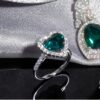 A statement necklace in heart cut emerald stone with round cut diamonds, resting on 18K white gold by Diagold Jewelry.